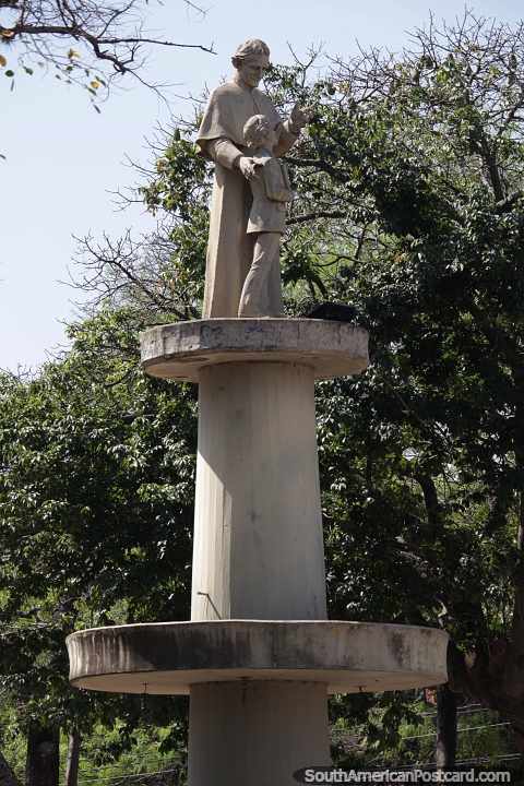 Elder and child, tall monument in a park in Santa Cruz. Bolivia