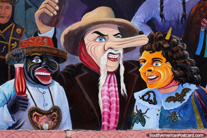 A Plaza de la Almudena tem murais de carnaval e figuras culturais em Cusco. Peru, America do Sul. (720x480px). A Plaza de la Almudena tem murais de carnaval e figuras culturais em Cusco. Peru (720x480px), Foto: © Mark Berman