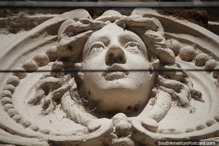 Antique building with a ceramic face as part of the facade in Ituzaingo. Argentina, South America. (720x480px). Antique building with a ceramic face as part of the facade in Ituzaingo. Argentina (720x480px), Photo: © Mark Berman