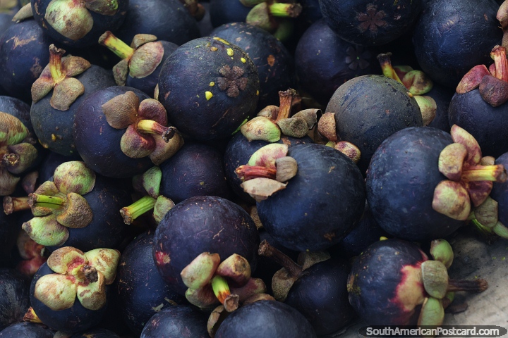 Mangosteen, a delicious and sweet fruit with health benefits for sale in Arraial d'Ajuda. Brazil, South America. (720x480px). Mangosteen, a delicious and sweet fruit with health benefits for sale in Arraial d'Ajuda. Brazil (720x480px), Photo: © Mark Berman