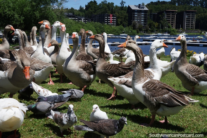 Large group of geese on the banks of the lake in Pucon. Chile, South America. (720x480px). Large group of geese on the banks of the lake in Pucon. Chile (720x480px), Photo: © Mark Berman