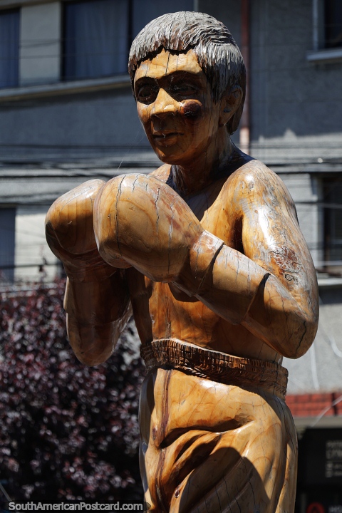 Martin Vargas (b.1955), important boxer born in Osorno, 91 wins, 15 losses, 3 draws, wooden monument in Osorno. Chile