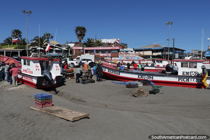 Fish market on the beach and behind in Pichilemu. Chile, South America. (720x480px). Fish market on the beach and behind in Pichilemu. Chile (720x480px), Photo: © Mark Berman