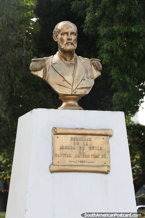 Captain Arturo Prat, a navy officer and a national hero, gold bust in Chillan. Chile, South America. (480x720px). Captain Arturo Prat, a navy officer and a national hero, gold bust in Chillan. Chile (480x720px), Photo: © Mark Berman
