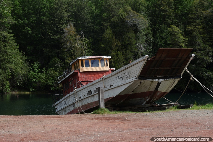 Boat on land beside the lake at Puerto Fuy. Chile, South America. (720x480px). Boat on land beside the lake at Puerto Fuy. Chile (720x480px), Photo: © Mark Berman
