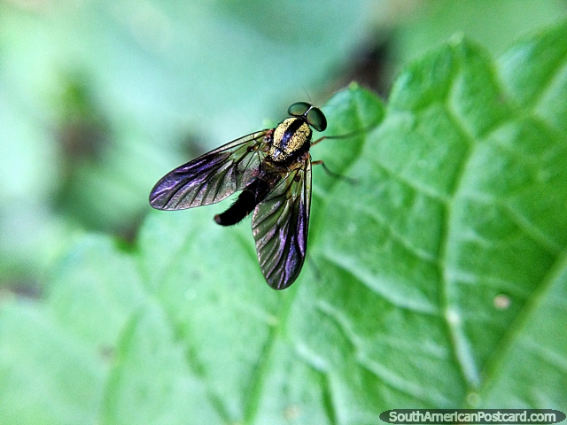 Just a fly but it has green eyes and a yellow back, macro photo in the garden at Tinamu Nature Reserve in Manizales. Colombia, South America. (640x480px). Just a fly but it has green eyes and a yellow back, macro photo in the garden at Tinamu Nature Reserve in Manizales. Colombia (640x480px), Photo: © Mark Berman