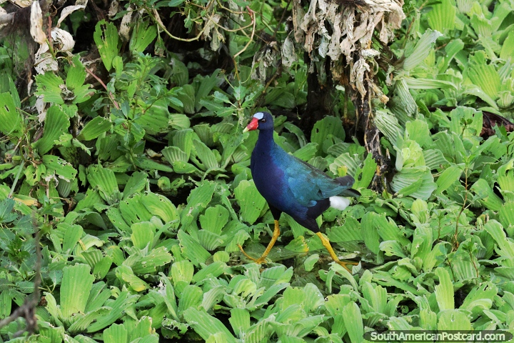 Purple Gallinule, a bird that loves the swamp and wetlands, seen here in Iquitos. Peru, South America. (720x480px). Purple Gallinule, a bird that loves the swamp and wetlands, seen here in Iquitos. Peru (720x480px), Photo: © Mark Berman
