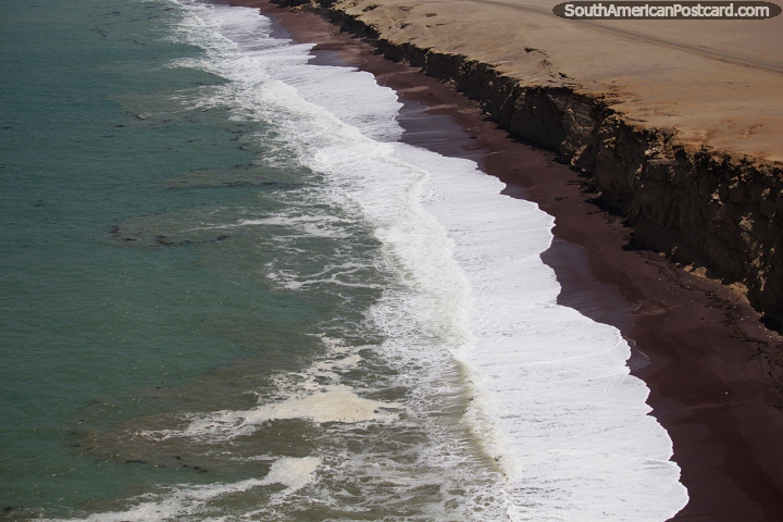 As ondas quebram e varrem a praia de pedra vermelha no Parque Nacional de Paracas. Peru, America do Sul. (720x480px). As ondas quebram e varrem a praia de pedra vermelha no Parque Nacional de Paracas. Peru (720x480px), Foto: © Mark Berman